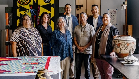 Sherrie Smith-Ferri, PhD, (center in photo) along with team of indigenous scholars rethinking and updating the display of Native objects at the DeYoung Museum